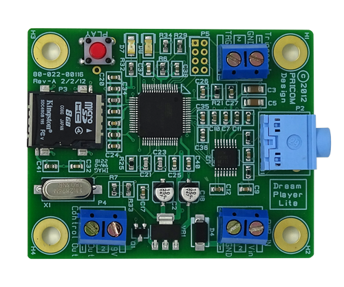 The LITE is the smallest audio playback device in the Dream Player Family. The LITE can be triggered via buttons, motion sensors, etc... All playback settings are stored on the SD Card and may be customized to your specific situation. A unique feature of the LITE is its low power consumption, which gives you the ability to easily run the player off a battery.